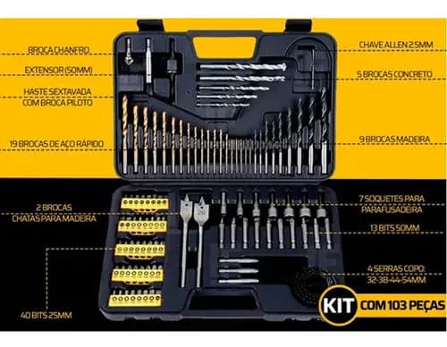 Jogo De Brocas Titânio Profissional Para Furadeira Com Maleta 103 Peças