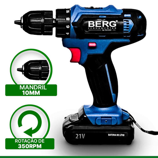 Furadeira e Parafusadeira à Bateria 21V BIVOLT Com Carregador 2 Baterias Bits